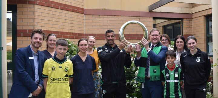 Now in its second season, Mercy Health’s partnership with Western United Football Club reached a high point when the National A-League Championship Trophy was held aloft before a group of excited patients, visitors and staff at Werribee Mercy Hospital (WMH).